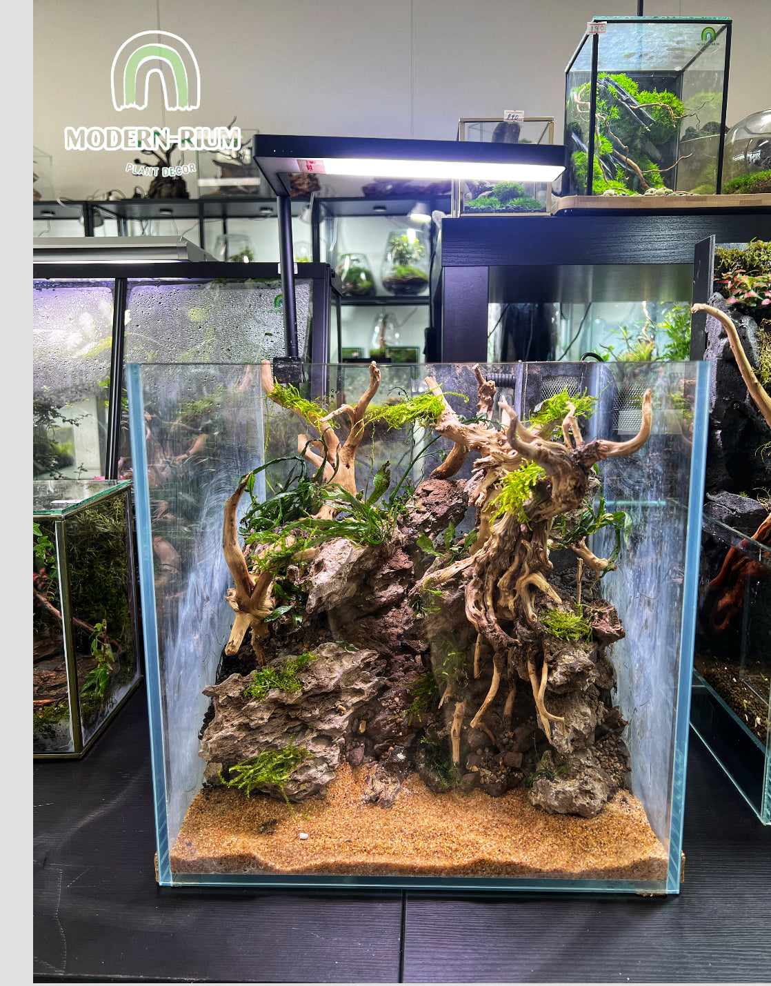 Each module is supplied with clear setup and care instructions to ensure proper installation and ongoing maintenance. The module features an integrated base, with aquarium-safe silicone included for secure attachment to the bottom glass of the aquarium (optional). Once installed, the structure creates an ideal environment for epiphytic aquarium plants and mosses, including Java fern, Trident fern, Needle-leaf fern, Anubias, Bucephalandra, Java moss, and Christmas moss...