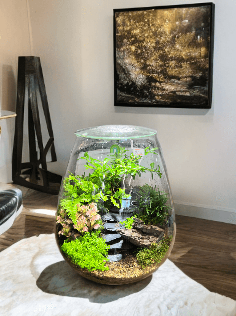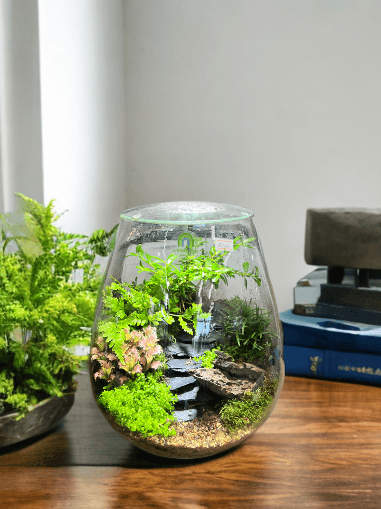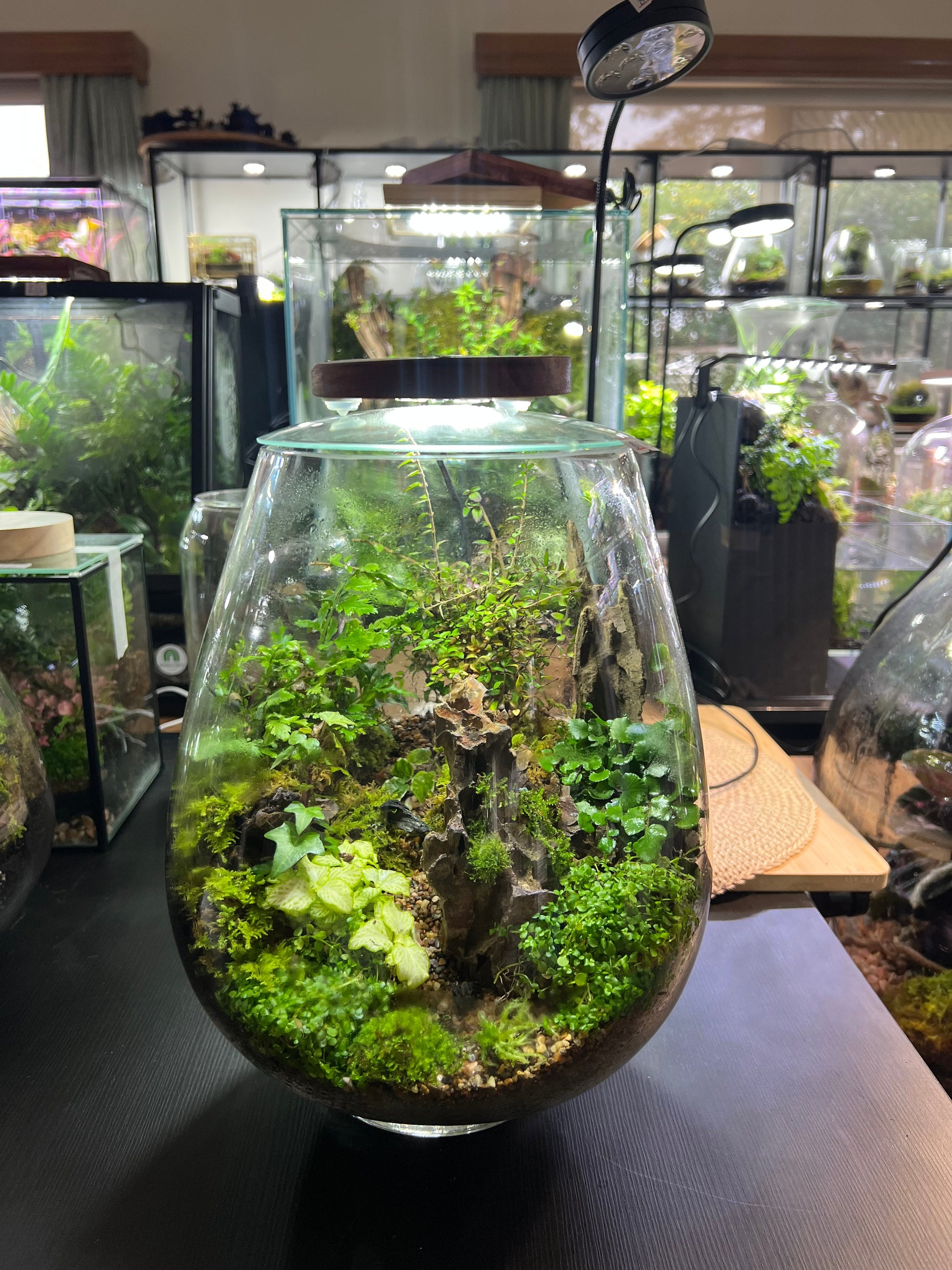 All my terrariums are balanced ecosystems with springtails, beneficial bacteria. They require minimal care and attention. l also have some lights for sale if you are interested (they are optional though),and there will be discount if buying a combo item and light.