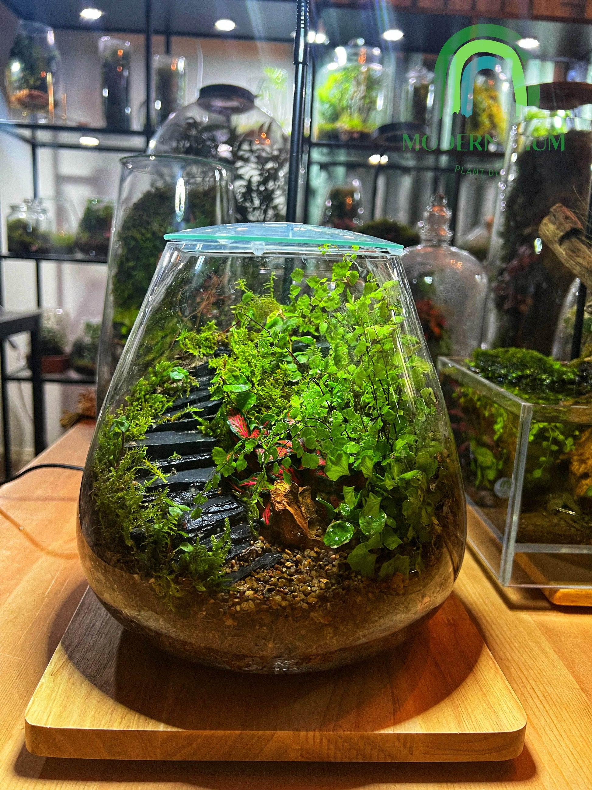 All my terrariums are balanced ecosystems with springtails, beneficial bacteria. They require minimal care and attention. l also have some lights for sale if you are interested (they are optional though),and there will be discount if buying a combo item and light.