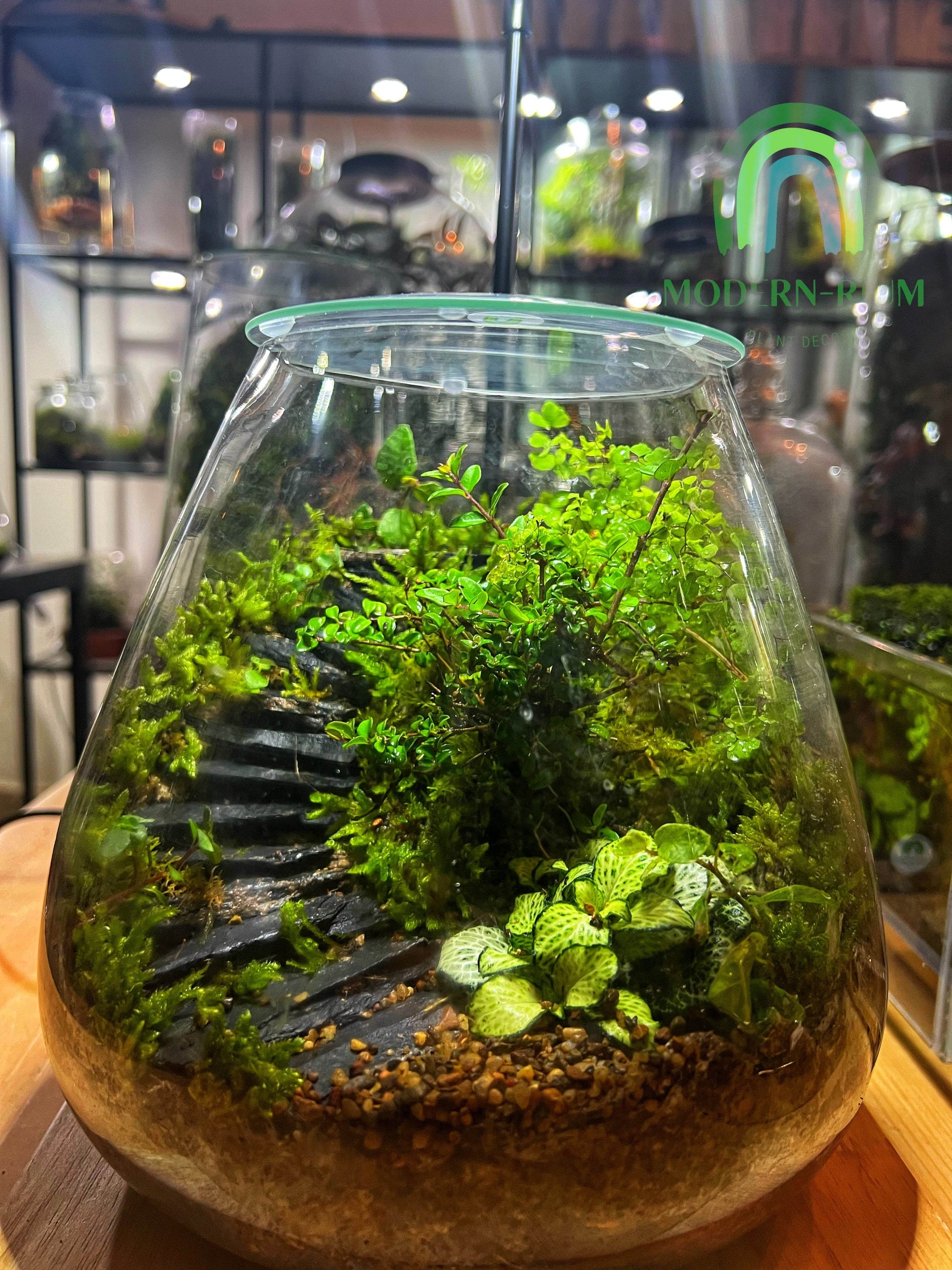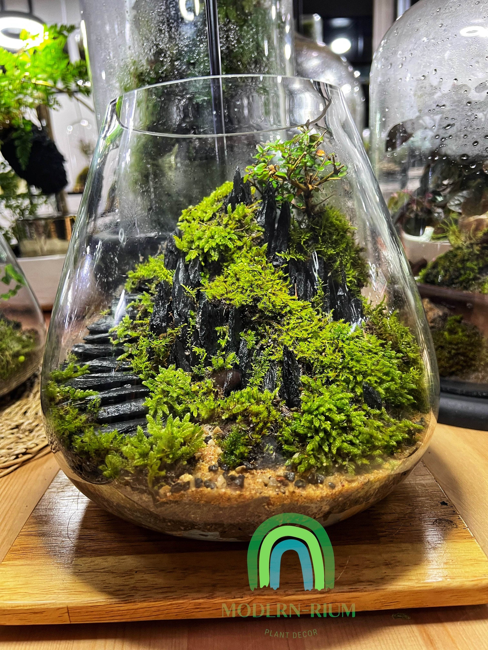 The Ruins Terrarium is a mesmerizing miniature world enclosed within a glass container. It showcases a captivating scene of nature's decay and reclamation. Moss-covered ruins, crumbling stone structures, and twisted vegetation create a hauntingly beautiful landscape. Delicate figurines of forgotten civilizations add a sense of mystery and wonder. The Terrarium evokes a sense of timelessness, where nature and history intertwine, inviting viewers to contemplate the cycle of life and the enduring power of nature's resilience.