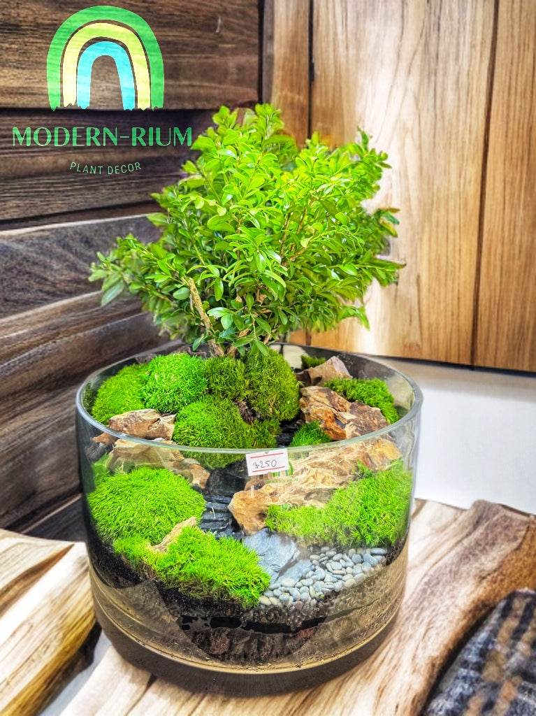 Verdant Horizon is a breathtaking terrarium that brings the essence of a serene, elevated forest into your living space. Featuring a majestic bonsai tree rising above soft mossy mounds and a winding streambed of smooth pebbles, it evokes the calm of a mountain retreat in miniature form.