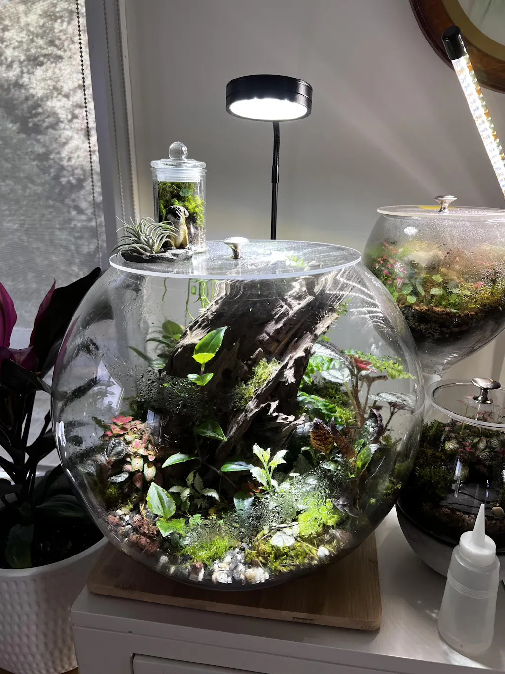 Medium and Small Wooden Base with Light for Terrarium LED Grow Light